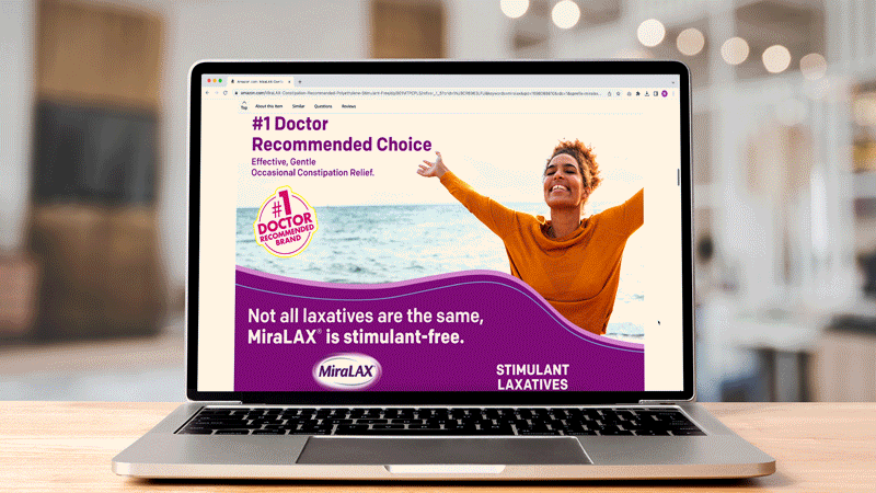 MiraLAX®, an osmotic laxative, works naturally with the water in your body to hydrate, soften, and ease stool through your colon in 1-3 days. This process provides comfort, so that you can get through your day with ease.